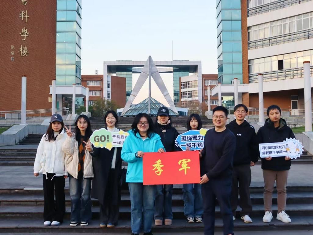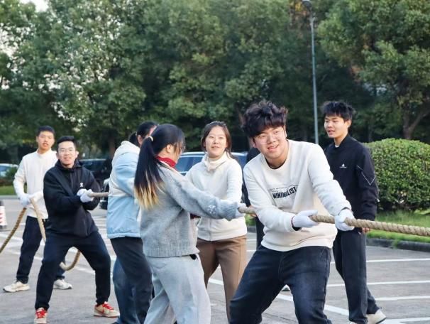 师生拔河比赛在包玉书科学楼10号楼南门空地举行。