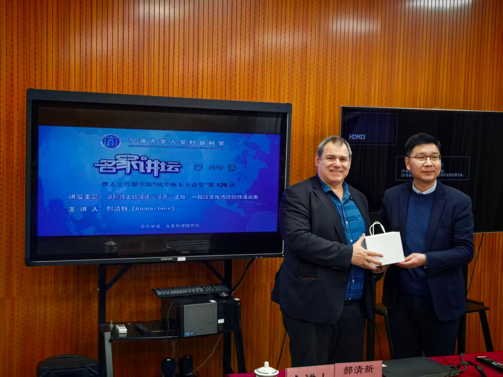 “风华浙东大讲堂”第129讲举办。匈牙利科麻豆官方网站院士、罗兰大学副校长郝清新(Hamar Imre)应邀作了题为“多瑙河上的汉语‘寻声’之旅:一段跨文化传播的鲜活历史“的专题讲座。讲座由麻豆官方网站